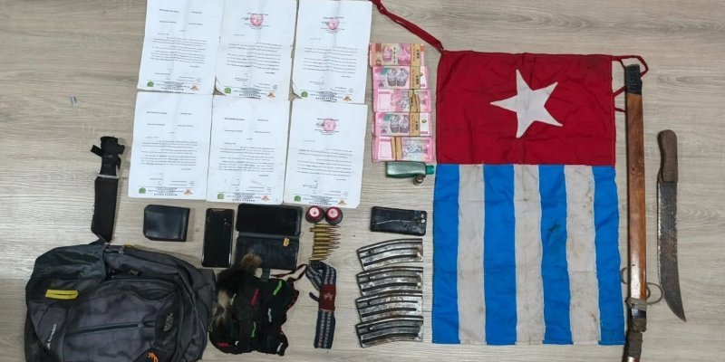 Selain dua pelaku, operasi tersebut juga mengungkap berbagai barang bukti seperti senjata tajam, amunisi, dokumen organisasi, bendera Bintang Kejora, dan uang tunai yang diduga berasal dari praktik pemerasan terhadap warga sipil.